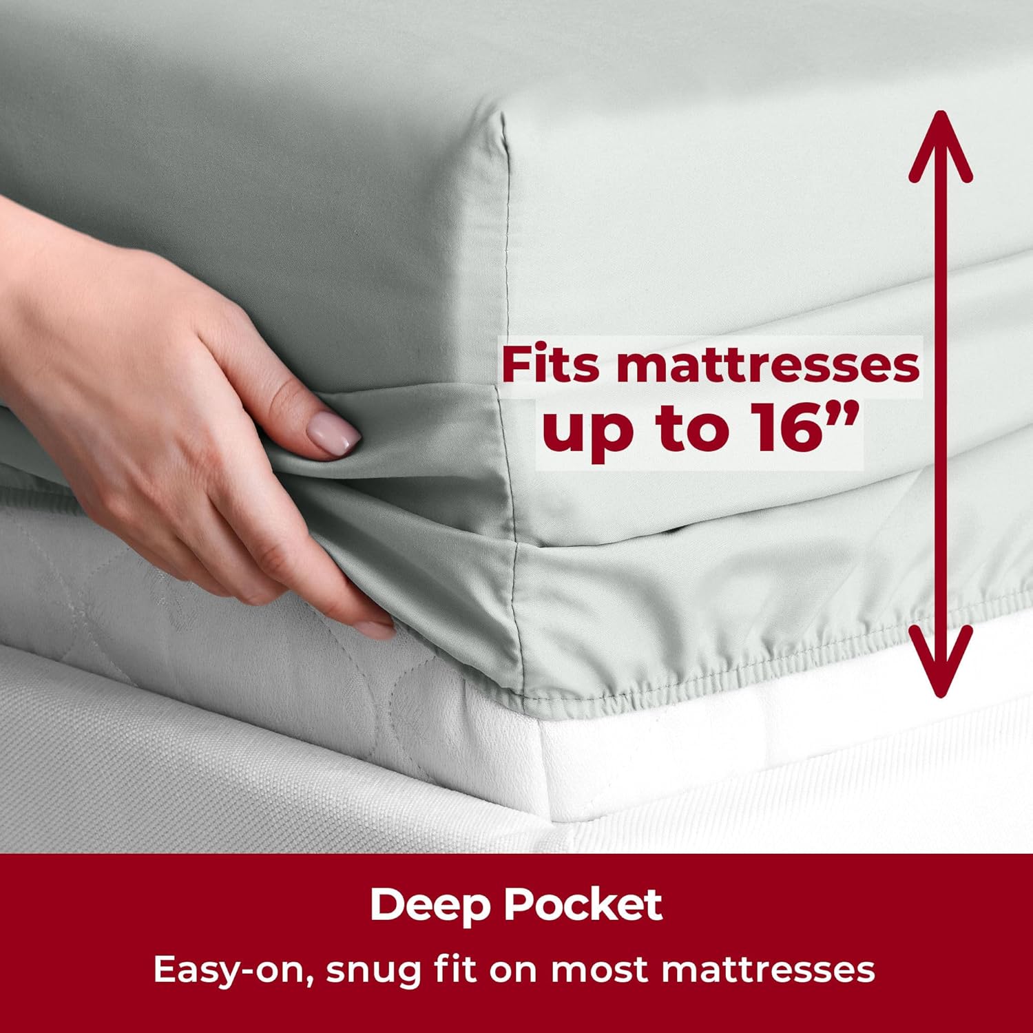 - Perfect Fit & Certified Safe - Deep pockets fit mattresses up to 16" deep, making them ideal for memory foam toppers, air mattresses, and more. A sewn-in elastic band ensures a snug, secure fit. OEKO-TEX(R) STANDARD 100 certified (22.HUS.40891, Hohenstein), tested for over 1,000 harmful substances for your peace of mind.