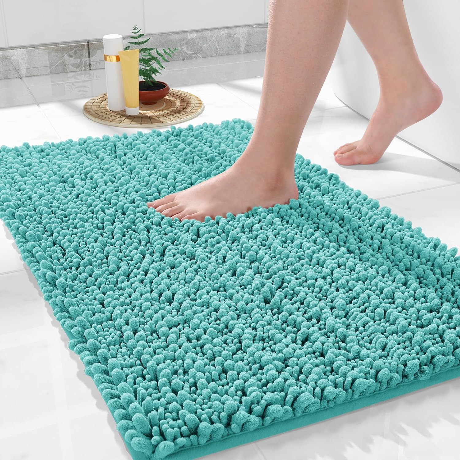 - Ultimate Cloud-Like Soft Comfort: Experience walking on clouds with our extra thick chenille bathroom mat! The ultra plush high pile density cradles your feet, banishing cold tiles after showers. It is perfect for adding warmth to any bathroom floor, transforming routine steps into luxury moments
