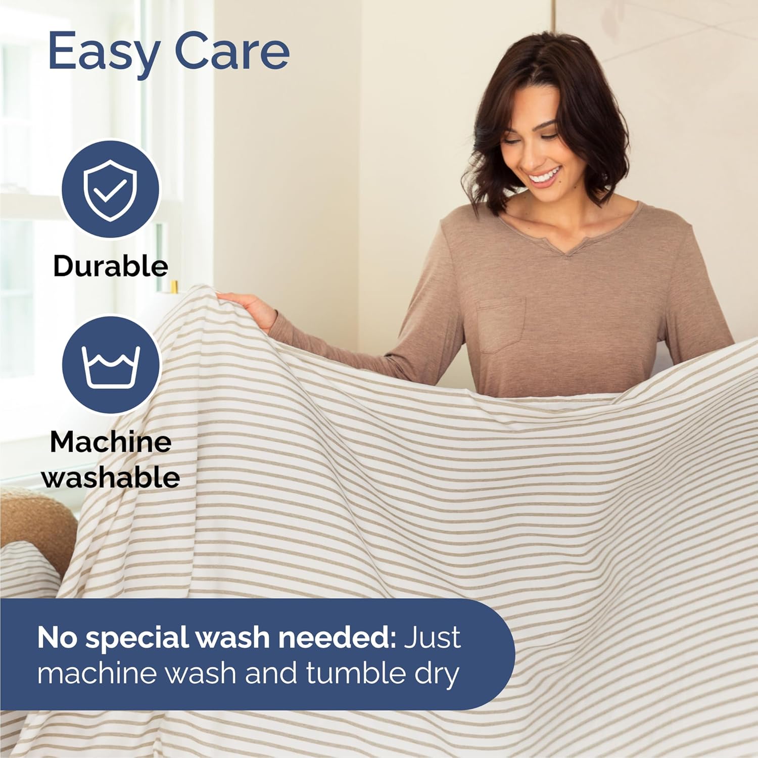 Cal King Size 4 Piece Sheet Set - Comfy Breathable & Cooling Bed Sheets Set - Hotel Luxury Bedding for Women, Men, Kids, Teens, Boys & Girls - Deep Pockets & Wrinkle Free - Oeko-Tex - Beige Stripes 2