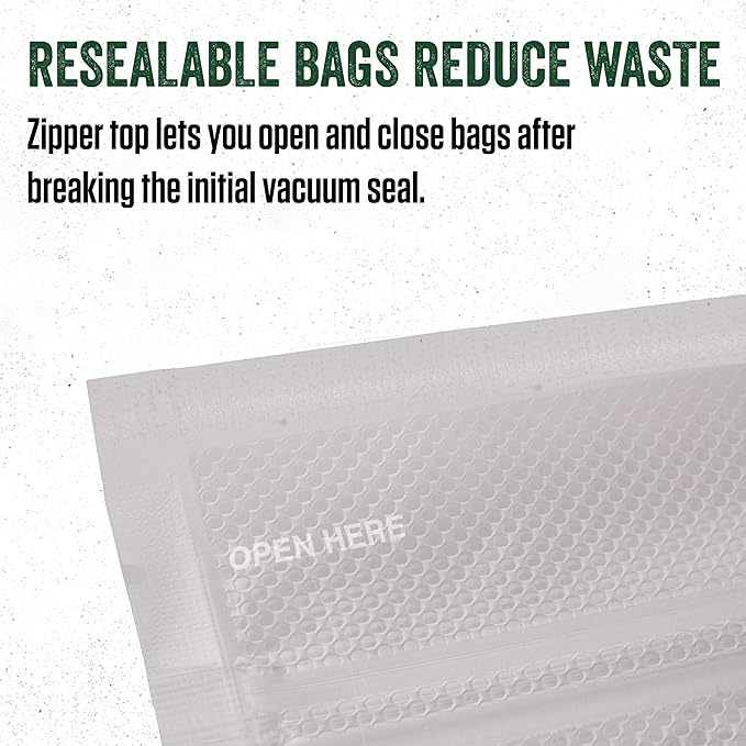 - Professional Results: Our vacuum bags are crafted for hunters and master chefs, featuring a zippered top that allows for bag reuse after the initial vacuum seal is broken. Each bag also includes a pattern design that effectively retains moisture.