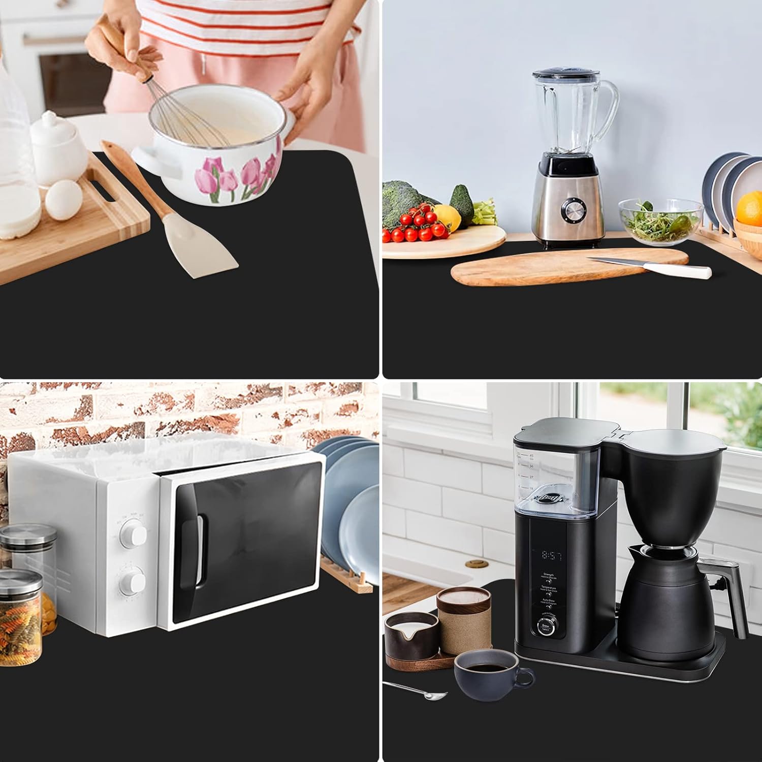 - Oversize : Sized at 32 x 24 x 0.05 inches (L x W x T), larger and thicker than regular size, provides a larger area to protect your counter top. It can be placed under the microwave, pot, air fryer, induction stove, toaster oven, coffee maker, cutting board, etc.
