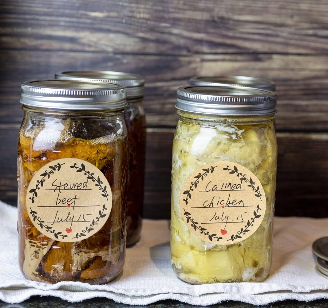 500pcs 2" Label Stickers for Jars and Lids, Wreath Design with 3 Lines for Writing, Kraft Sticker Labels Pantry Labels, Mason Jar Labels Canning Labels Bottle Labels