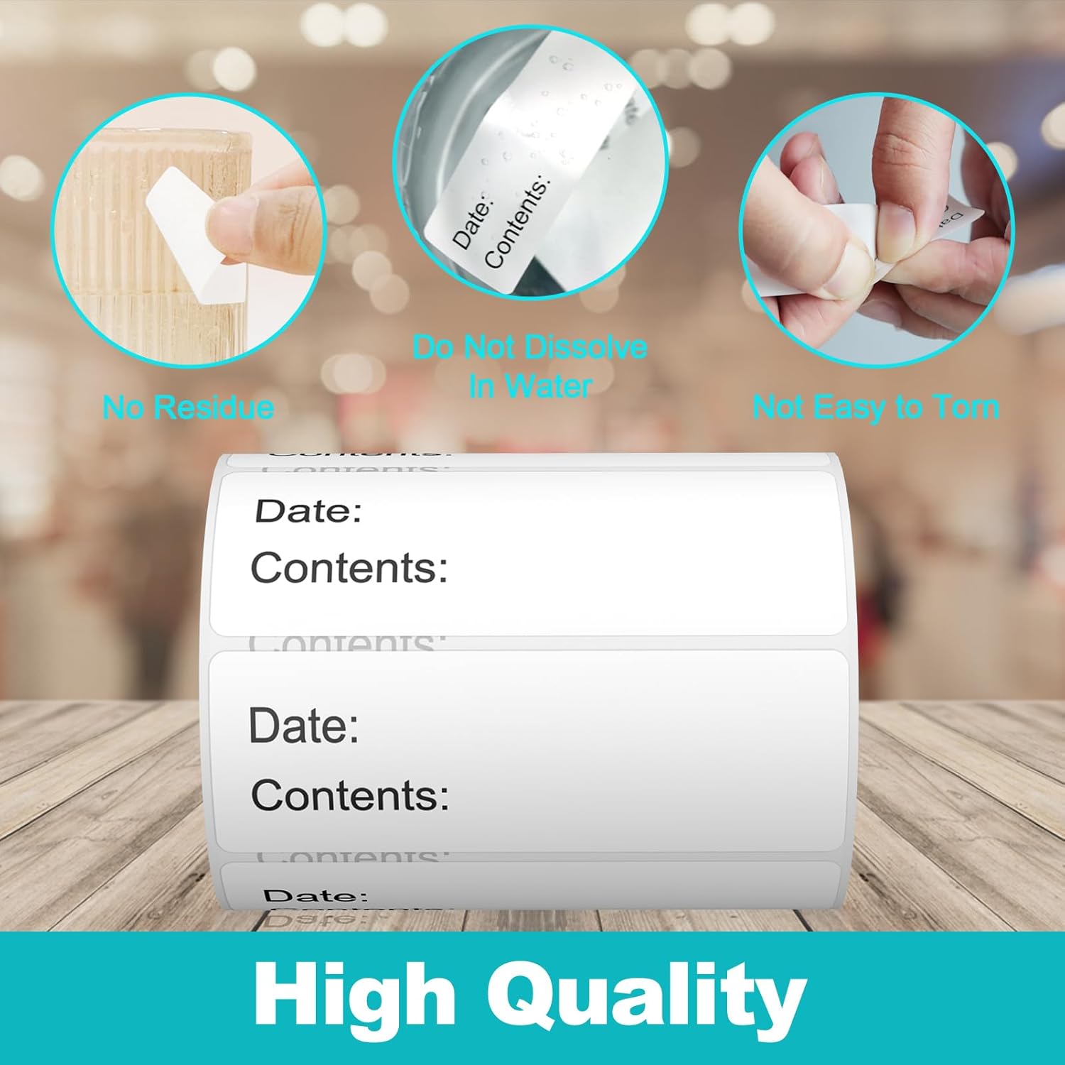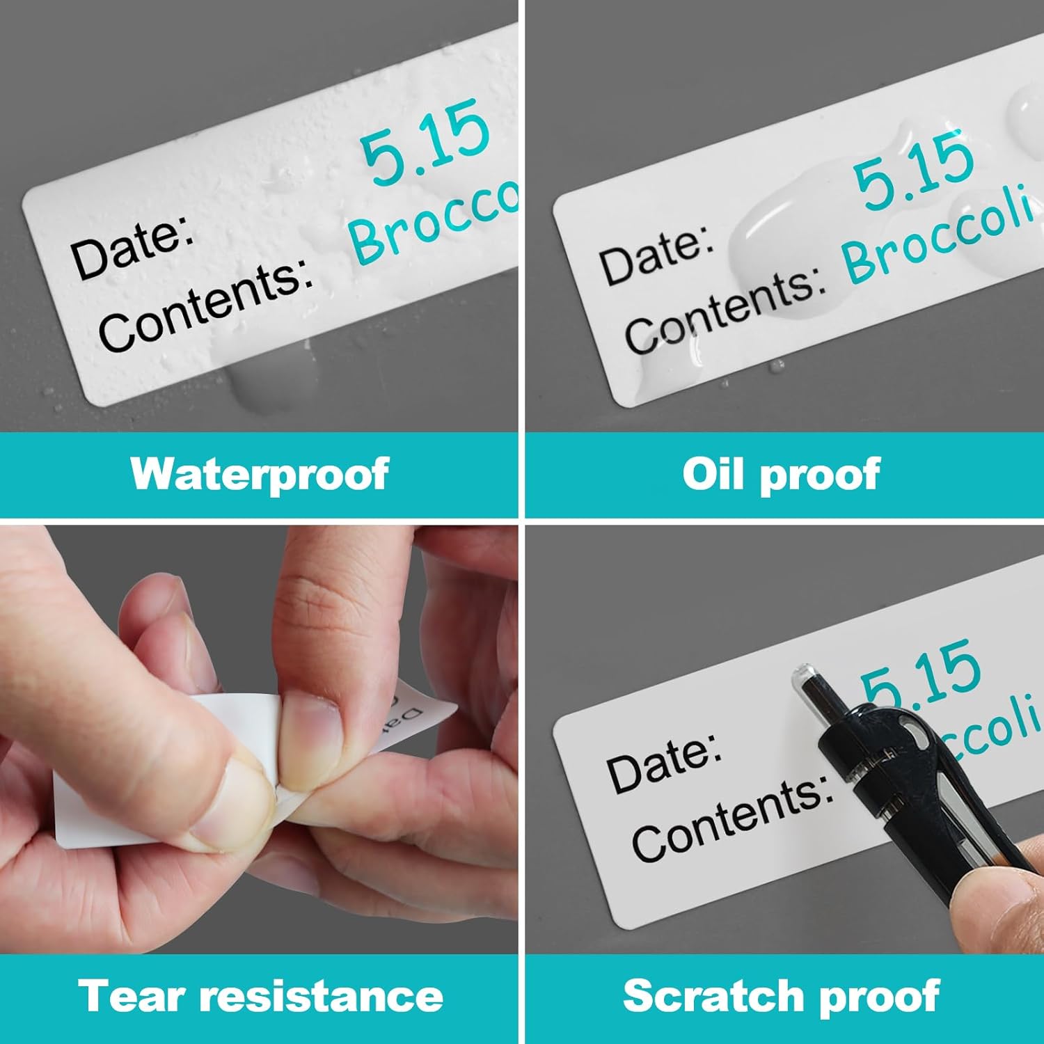 - Kitchen Helper – No paper or glue residue left on the food container or plastic bags,Easy to stick and peel off.Laminated with high density water and oil resistance foil, 500 PCs align in an easy distribute roll with perforation line.The label paper is strong and cannot be torn.