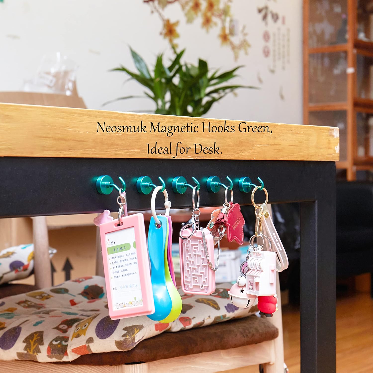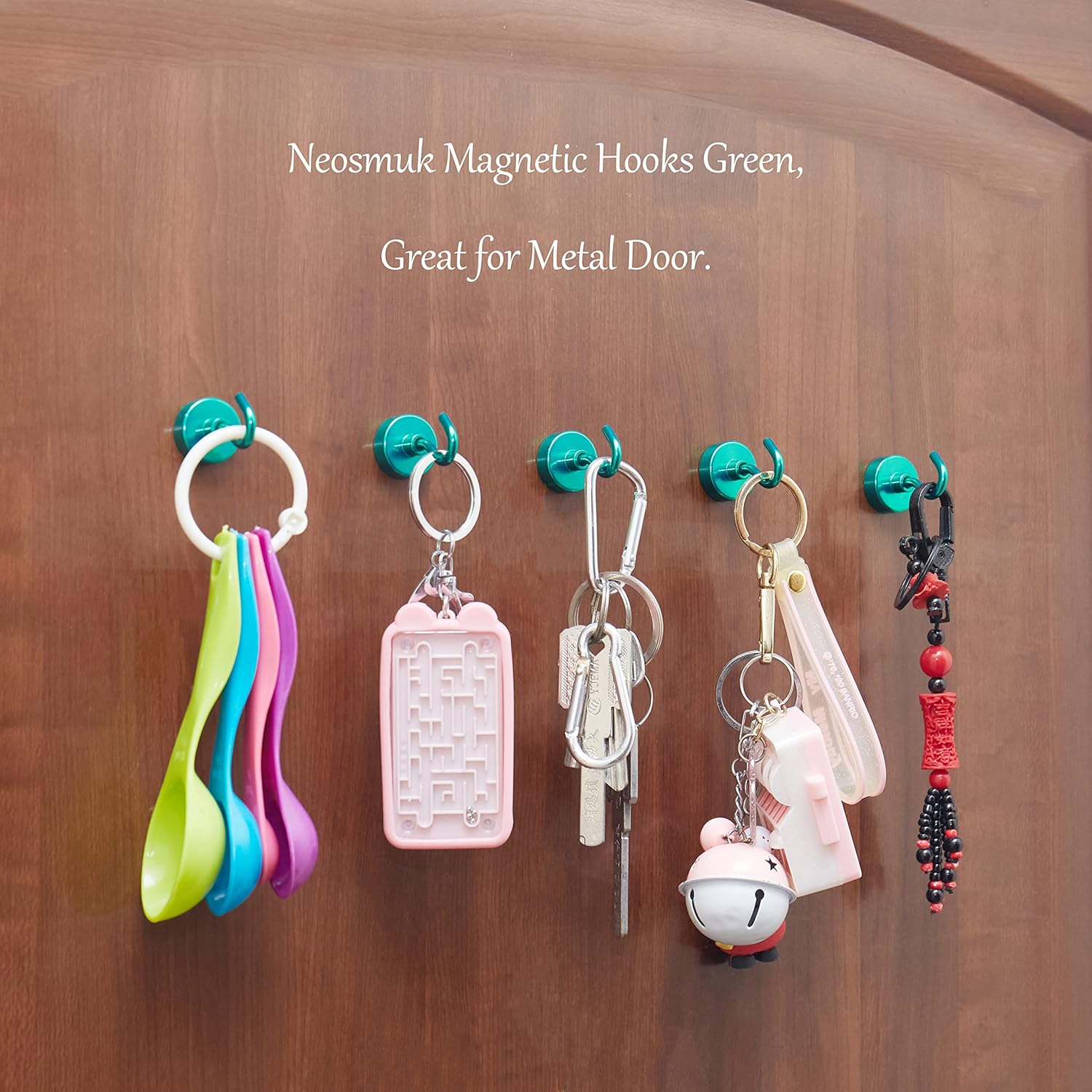 Neosmuk Magnetic Hooks,Heavy Duty Earth Magnets with Hook for Refrigerator, Extra Strong Cruise Hook for Hanging, Magnetic Hanger for Cabins, Grill (Green, 10 Pack)