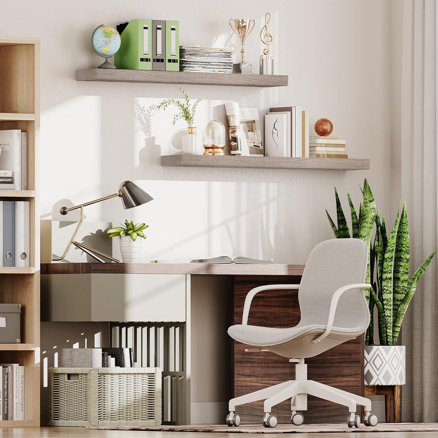 - Exquisite Wall Surface Decoration: Two classic and elegant greige wooden shelves can be placed on each wall surface of all household rooms. This floating shelf for room wall is not only for its decoration effect, but also for this wall shelves high practicality. It is an ideal place to display your beloved photos, trophies and other delicate ecorations