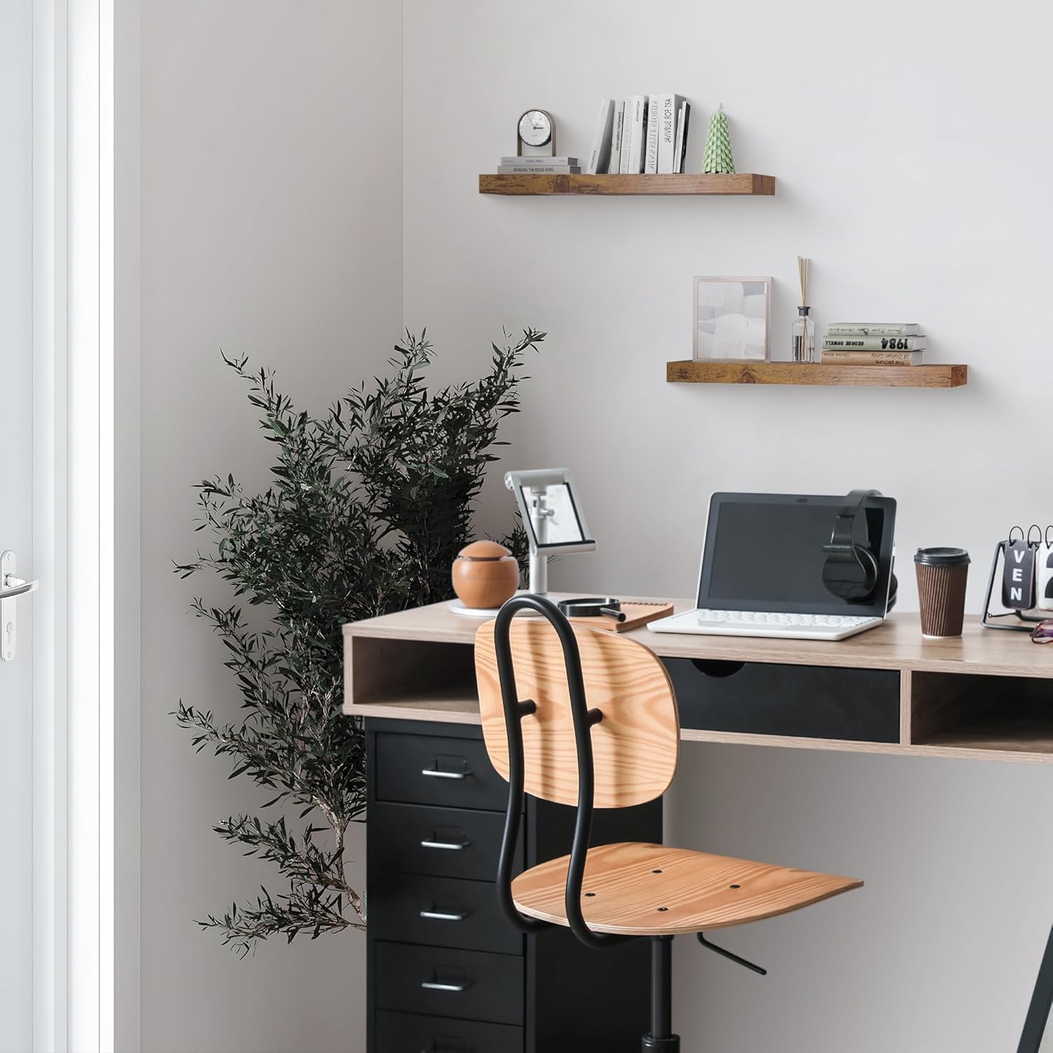 Colima 24" Modern Wood Floating Shelves, 2-Pack, 1.3" Thick, Wall Mounted, 50 lbs Capacity, Bedroom, Bathroom, Kitchen
