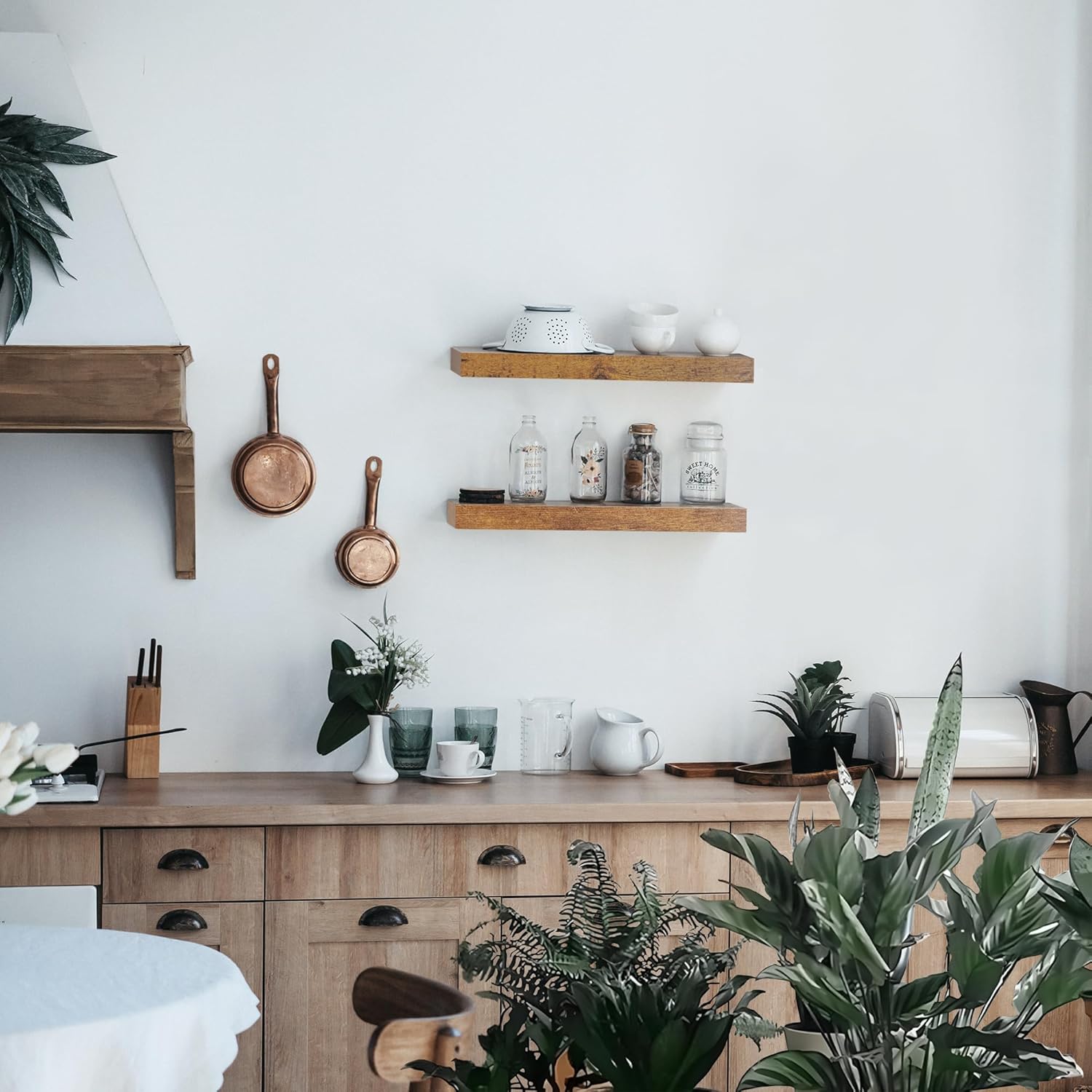- STRONG AND DURABLE: Crafted from high-quality materials, these kitchen wall shelves are 1.3 inches thick and 11 inches wide, capable of holding up to 50 pounds. Solid brackets ensure no sagging or wobbling, providing reliable support for your favorite items.