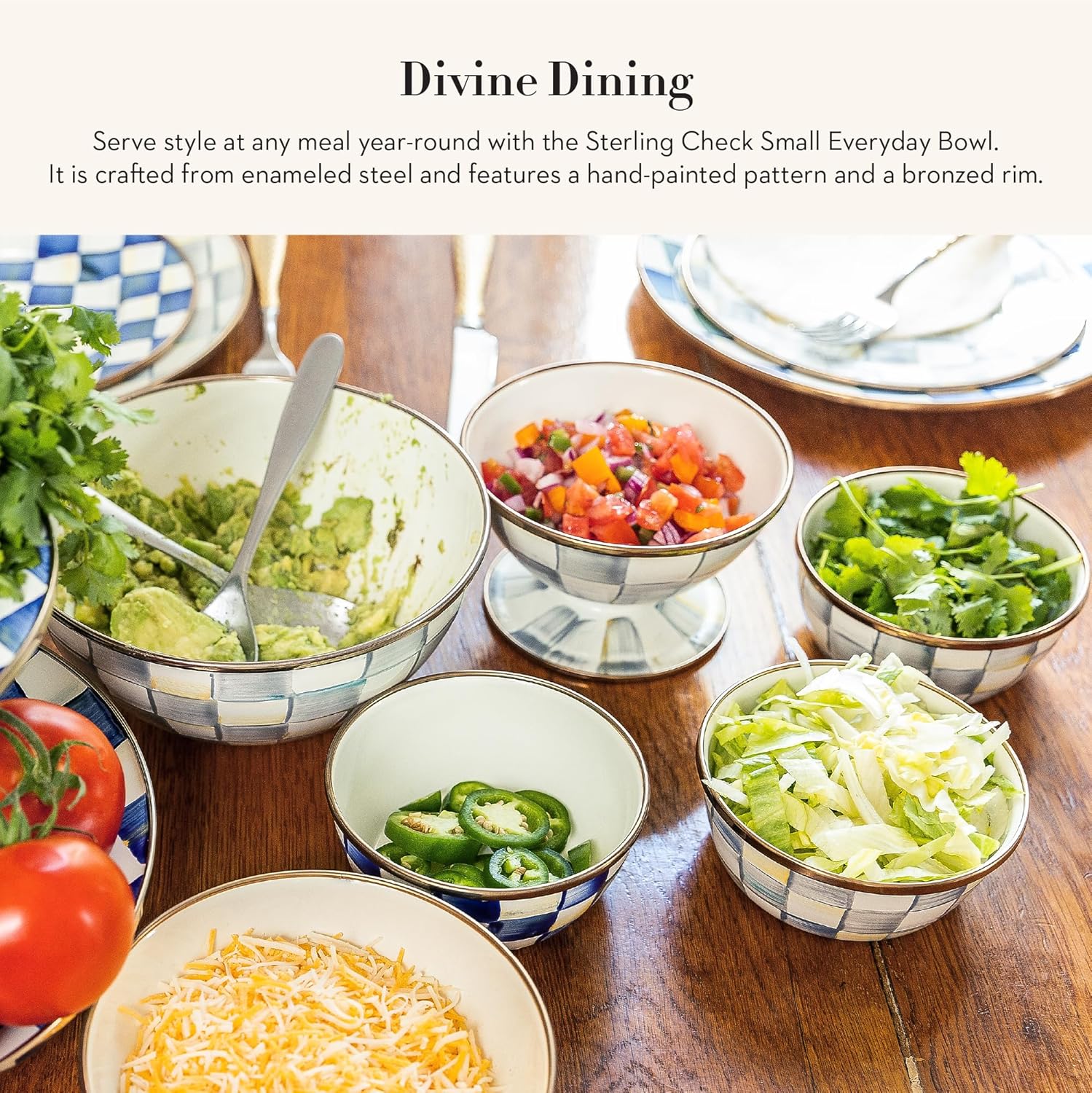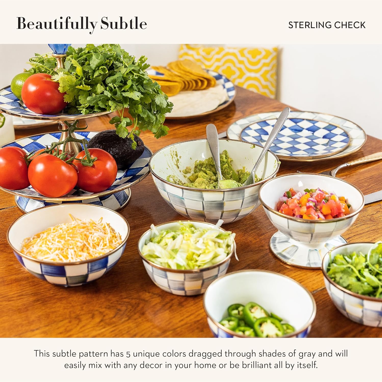 MACKENZIE-CHILDS Enamel Everyday Bowl, Serving Bowl for Entertaining, Small, Gray-and-White Sterling Check, Set of 1