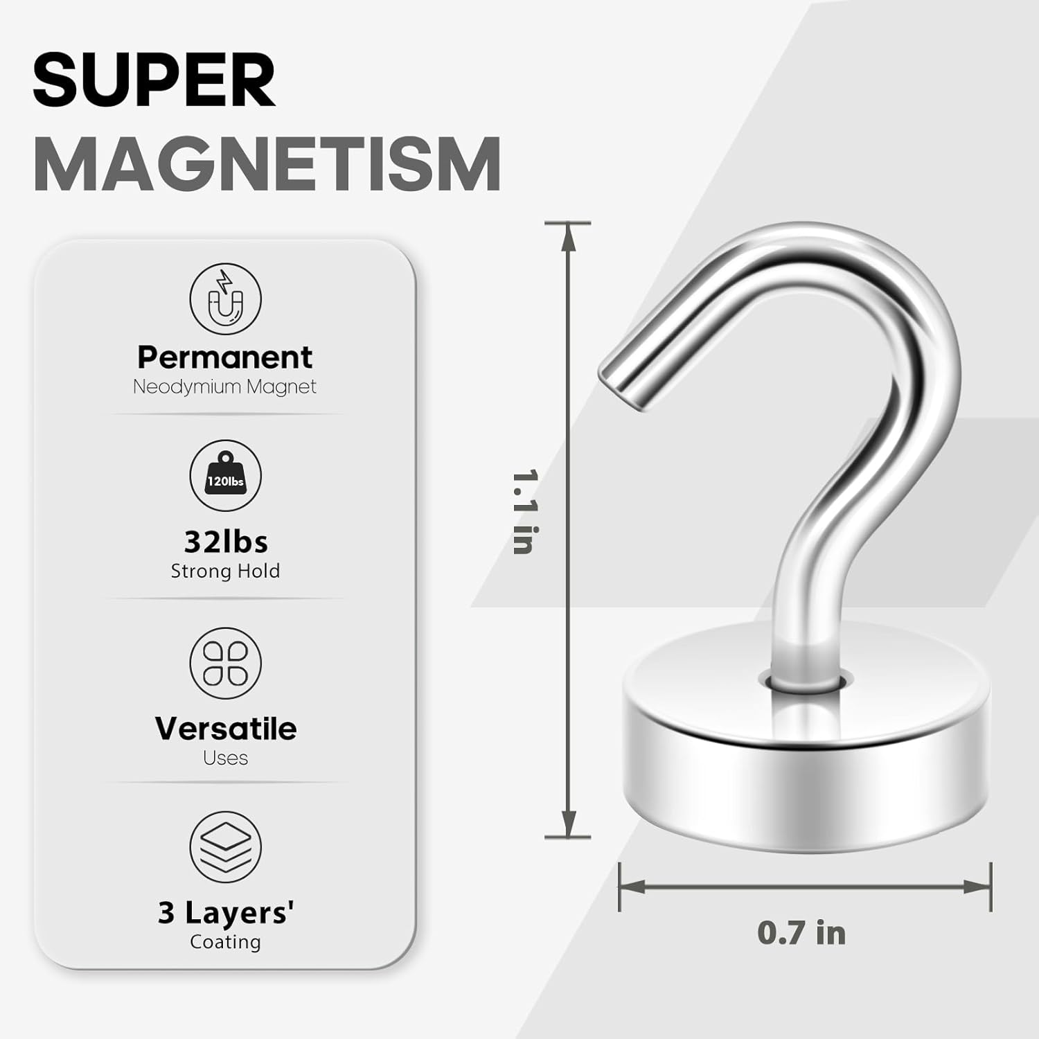 Neosmuk Magnetic Hooks, Cruise Ship Essentials, 30lb+ Heavy Duty Magnetic Hooks for Cruise Cabins, Refrigerator, Grill, Hanging, and Travel | Extra Strong Must-Haves Magnet Hook,Silver,Pack of 10