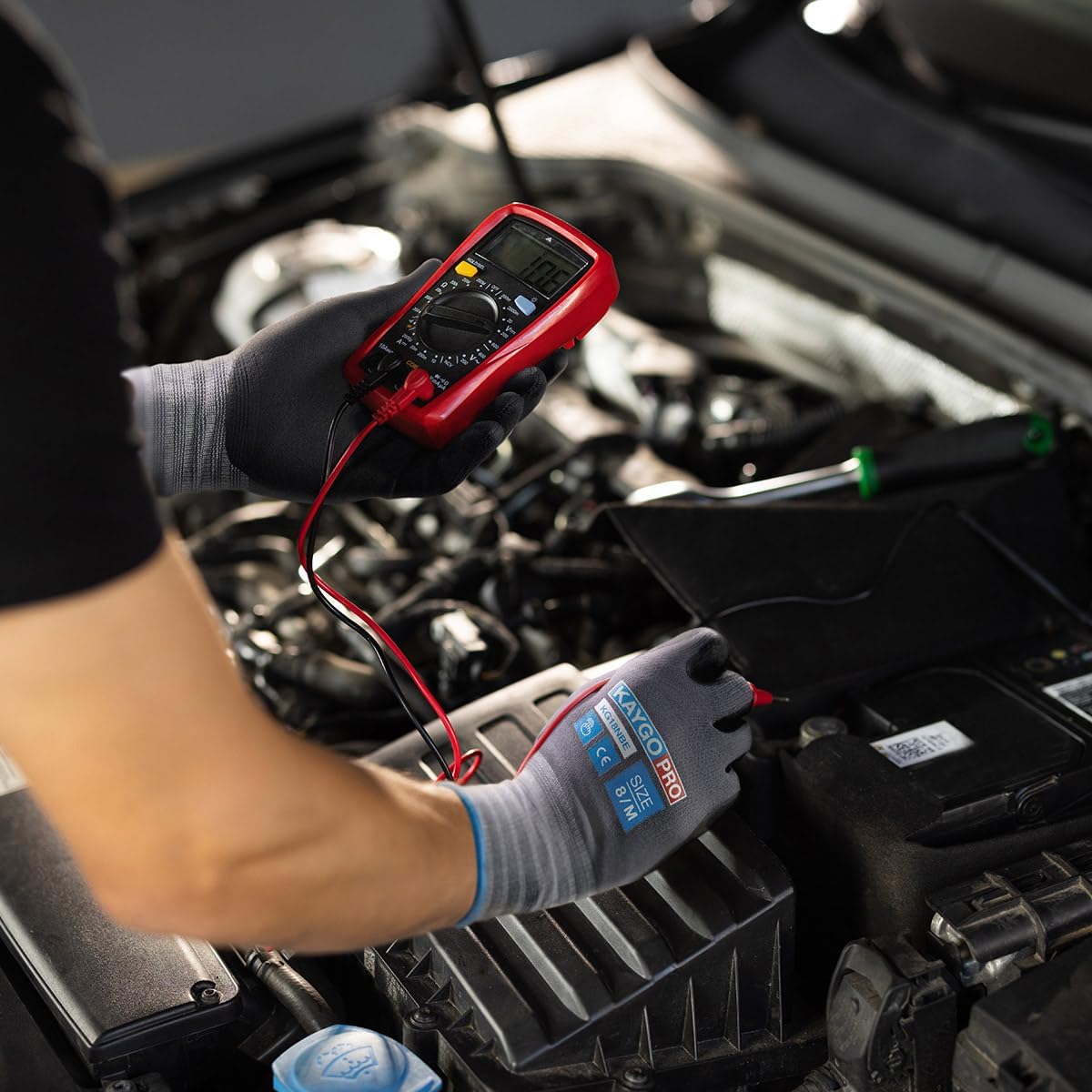 KAYGO Safety Work Gloves MicroFoam Nitrile Coated, 12 Pairs KG18NB,Seamless Knit Nylon Glove with full fingers Touchscreen, Ideal for General Purpose,Automotive, Black,L