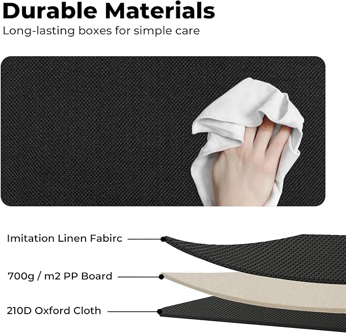 - High-Quality Materials - Made from high-quality faux linen fabric with PP board around the sides and bottom, this storage box is durable, safe, eco-friendly, and odorless. It's also easy to clean with a damp cloth.