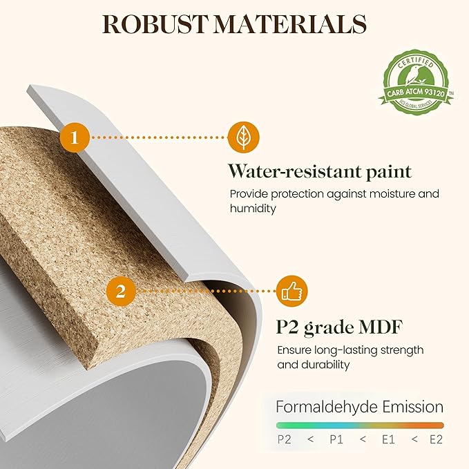 - Long-lasting Materials: This bathroom wall cabinet meets the safety standards of both TSCA and EPA. Crafted from P2 - grade MDF and finished with Eco- Friendly paint on the surface, it is sturdy and highly resistant to moisture.