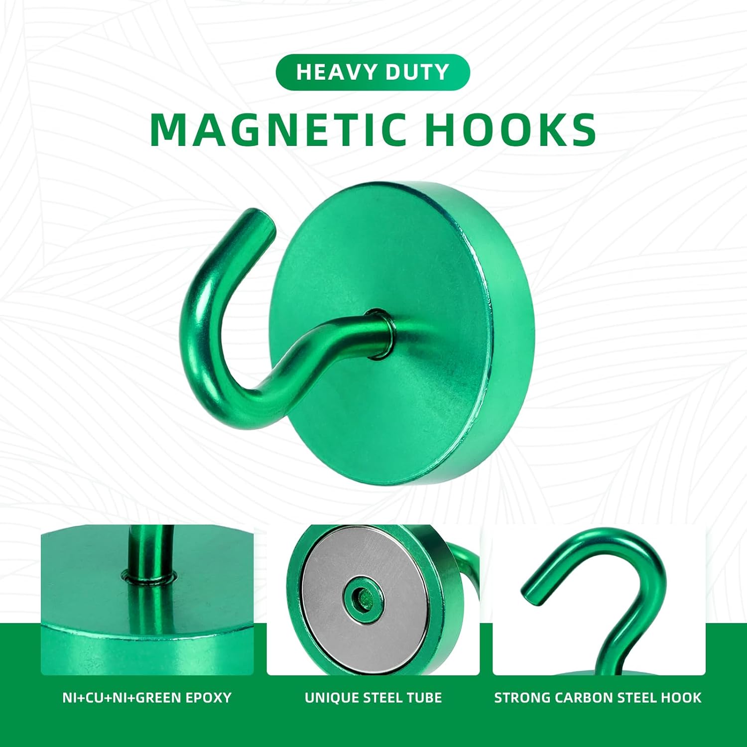 - ✔MAGIC STEEL TUBE DESIGN - Unique design of steel tube inside the base of magnetic hooks greatly increases the attractive force , especially on thin steel! It increase approximately 20% force comparing those none-tube magnets. it solves the problem of weak force on thin steel. Permanent magnetic hook with magic steel tube, strong magnetism lasts forever!