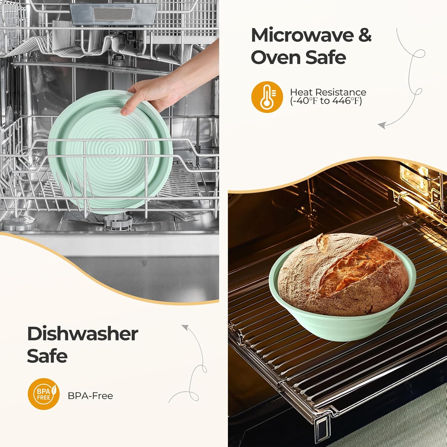 - Effortless Cleaning: Enjoy easy cleanup with our dishwasher-safe silicone proofing baskets for sourdough bread baking. The non-stick silicone surface makes hand washing simple, and the baskets are designed to withstand frequent use without retaining odors or stains