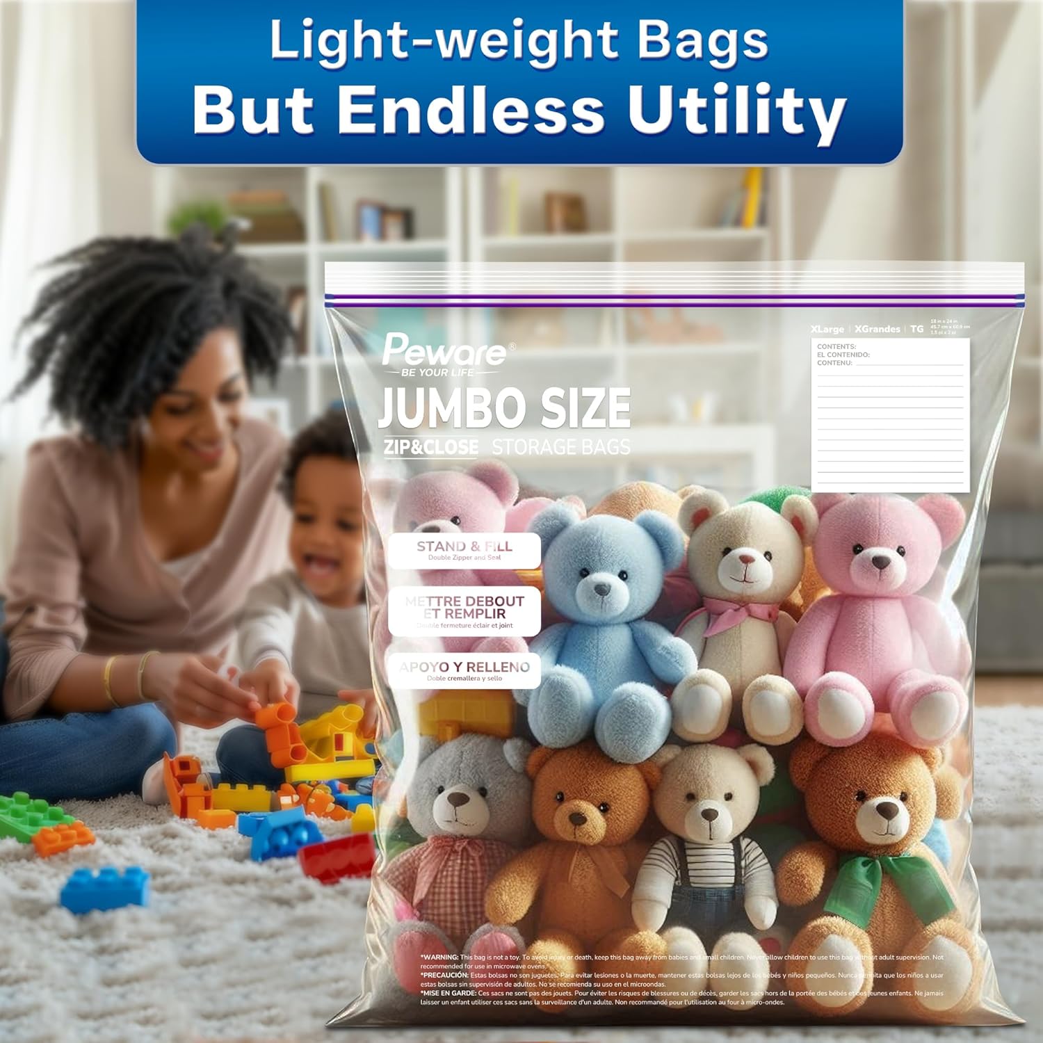 - EXTRA LARGE 16X20 INCHES SIZE: Perfect for storing bulky items like blankets, pillows, or large batches of food. With a 3-gallon capacity, these bags are the ultimate solution for heavy-duty storage needs.