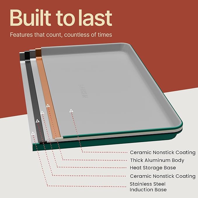 - Superior Durability and Heat Distribution: Made from high-gauge aluminized steel, this bakeware set guarantees durability and even heat distribution for consistently excellent results.
