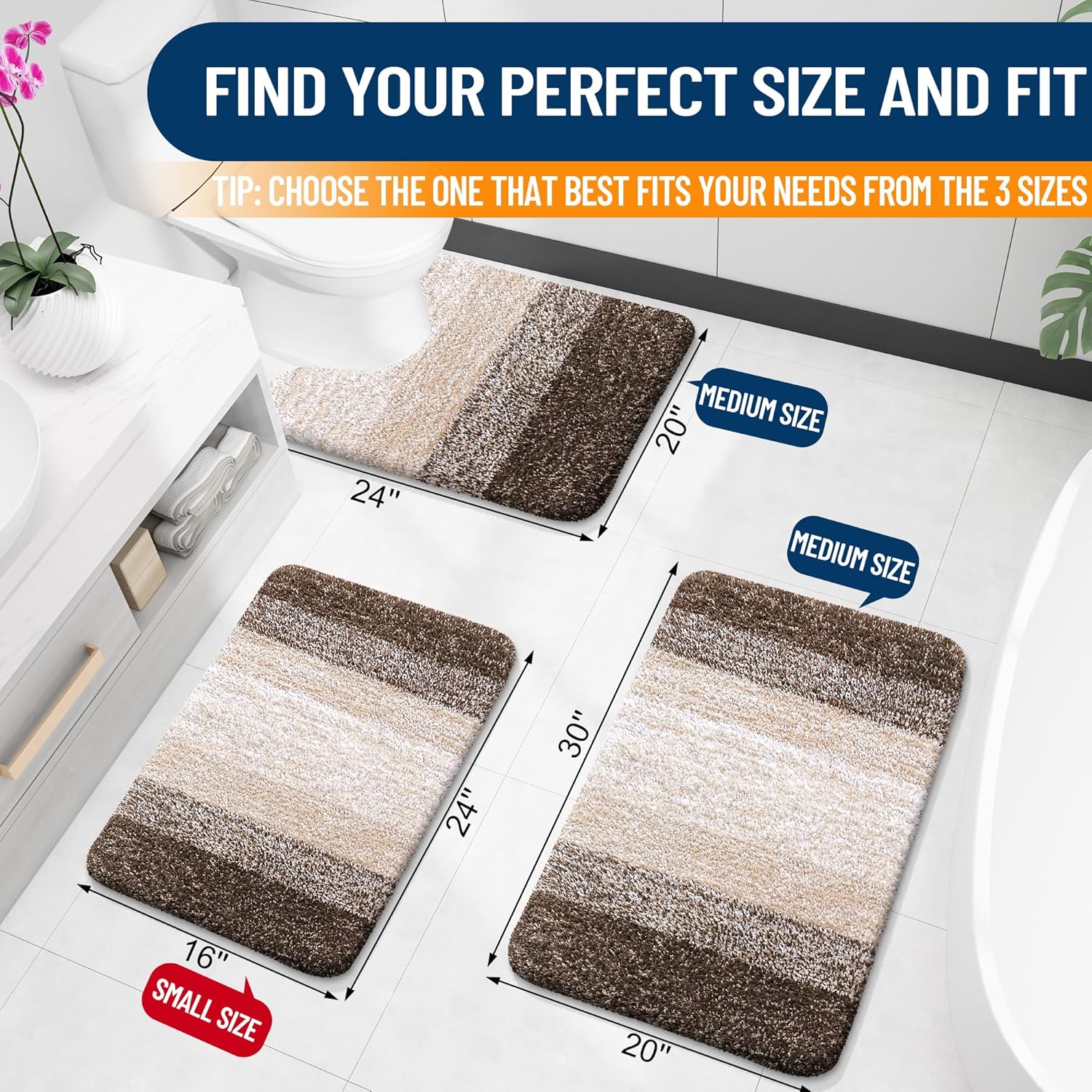 - [Matching Collection, Beautiful Décor & Versatile] Elevate your bathroom decor with our elegant gradient color stripe mats, ideal for sinks, showers, and beyond. Coordinate with matching toilet lid covers and contour rugs for added warmth and style. Complete the ensemble with our complementing shower curtains. Perfect for enhancing your own space with sophistication.
