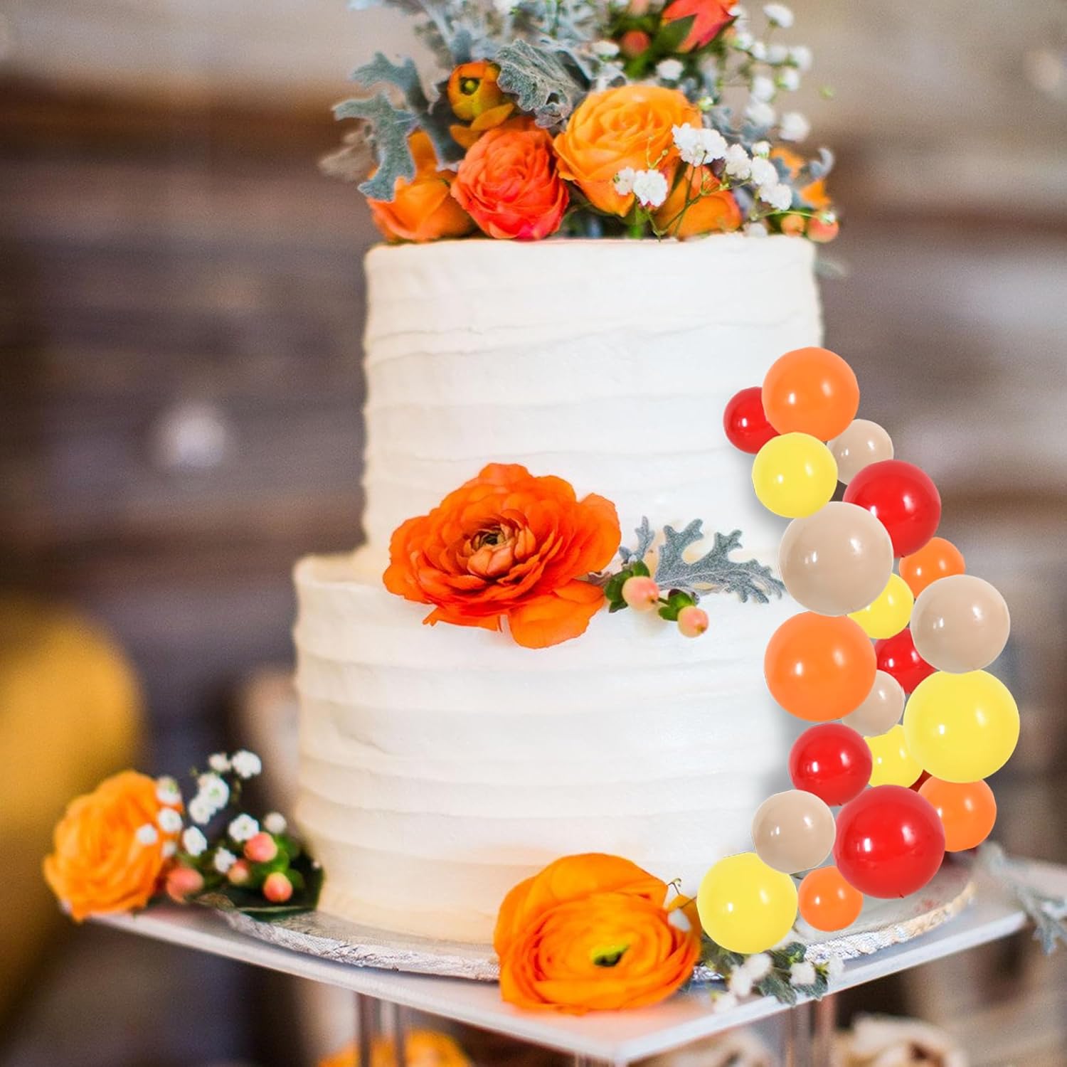- Package Included:40 pieces plastic foam balls cake toppers in 4 colors:red, orange, yellow, khaki.Size:including 0.79 inch x4, 0.98 inch x2, 1.18 inch x2 and 1.57 inch x2.