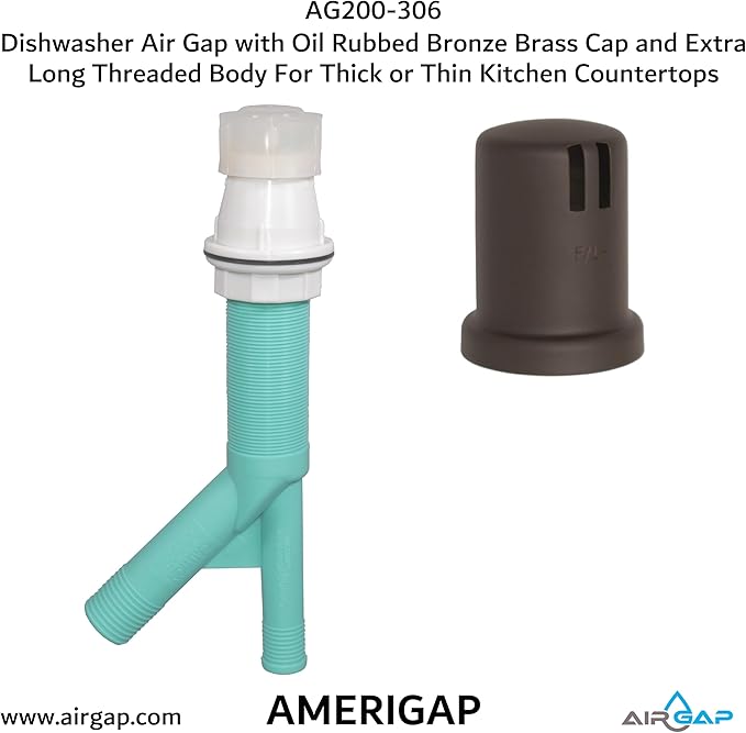 Dishwasher Air Gap with Skirted Oil Rubbed Bronze Brass Cap and Extra Long Threaded Body for Thick or Thin Kitchen Countertops (AG200-306, AG200-X06, AMERIGAP)