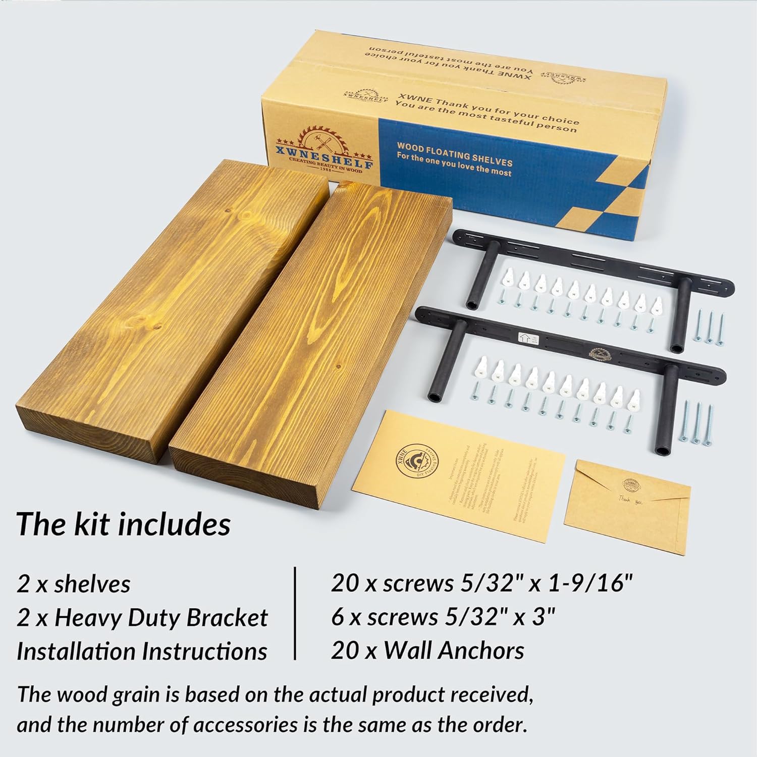 - Solid Wood Floating Shelves: The 24 inch wood Floating Shelf is made from 100% solid pine, selected for its beautiful wood grain texture and knotted into points, with a sanded, hand-stained finish that gives the space a rustic, natural, warm feel. Note: All steps are done by hand and each ledge is slightly different, but equally stunning!