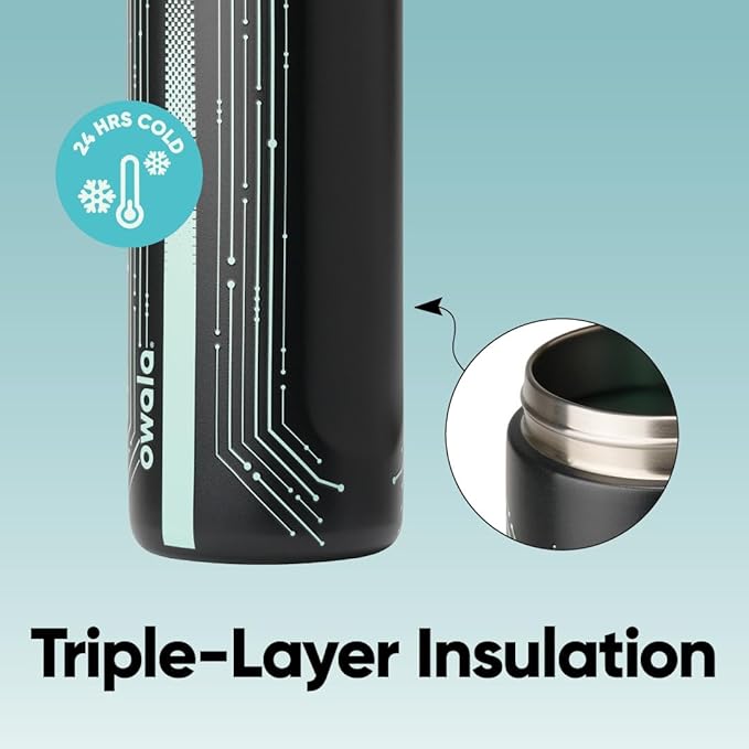 Owala TRON FreeSip Insulated Stainless Steel Glow in the Dark Water Bottle with Straw for Sports and Travel, BPA-Free, 24 oz, Black