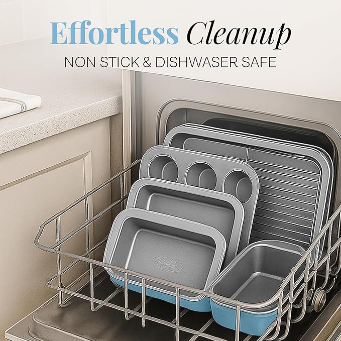 - DISHWASHER SAFE FOR EASY CLEANING: Cleanup should never feel like a chore. These non toxic bakeware essentials are dishwasher safe, so you can go from oven to sink to clean shelves without breaking a sweat. Spend less time scrubbing and more time enjoying your fresh-baked treats.