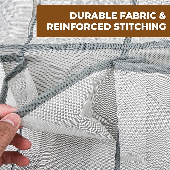 - BREATHABLE ECO-FRIENDLY MATERIAL: This door shoe organizer is made of thicker non-woven fabric with nylon mesh pocket, which is breathable and eco-friendly. Especially for wet shoes, don't worry about getting gross and mildewed. The mesh pocket design promotes air circulation, dries quickly, and the see-through net makes it easy to find each pair.